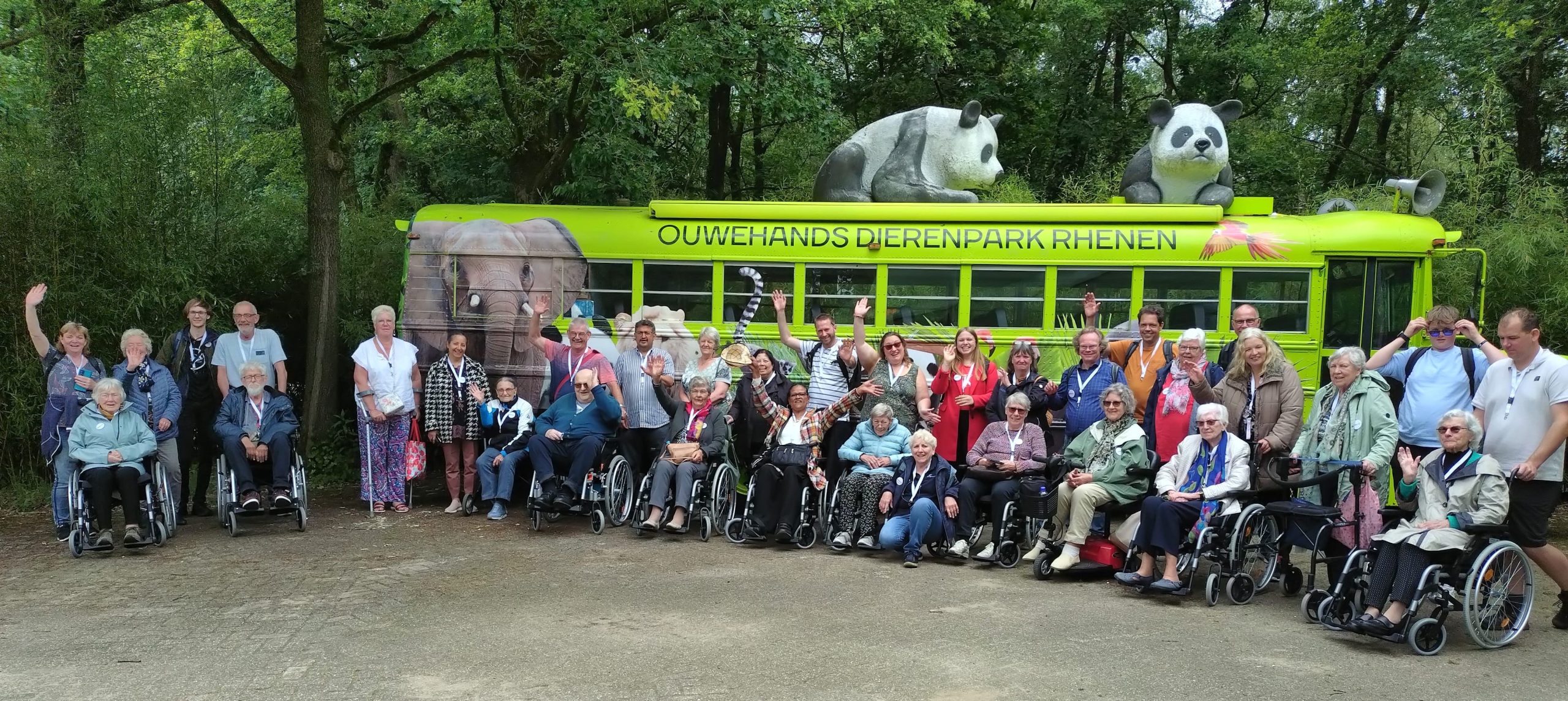 Aangekomen bij de dierentuin werden we op het parkeerterrein hartelijk ontvangen door vele vrijwilligers van de Stichting Awareness. We konden gebruik maken van 10 rolstoelen en begeleiding. De doelstelling was het zien van de panda’s, bruine beren en de zeeleeuwen show. Bleken er ook witte leeuwen en ijsberen te zijn.