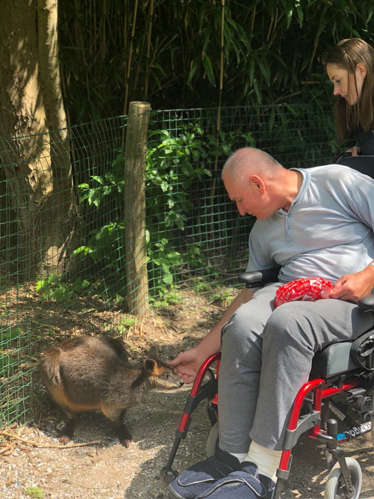In de zomerperiode worden er weinig activiteiten georganiseerd voor ouderen. Stichting Bezoek&Co te Leeuwarden kon echter met steun van de provincie Friesland een uitstapje organiseren naar Aqua Zoo. Helaas niet voor Alex en Martin, zij hadden de pech dat hun auto er mee ophield in het zicht van de haven. De andere deelnemers waren echter weer in de gelegenheid elkaar te ontmoeten en bij te praten. Het weer was prachtig en in het park was veel te bekijken. Daarbij ging het niet alleen om de dieren, er waren ook veel gezinnen met jonge kinderen. Het is altijd weer vertederend te zien hoe kleintjes reageren op al die beestenboel. Dat is dan weer een voordeel van een bezoek aan het park in de vakantieperiode. Wat betreft de lunch hadden we gekozen voor het bekende snackmenu van Aqua Zoo. Gezond is het niet, maar lekker was het wel. En dat gold ook voor de ijsjes die na afloop nog werden uitgereikt.