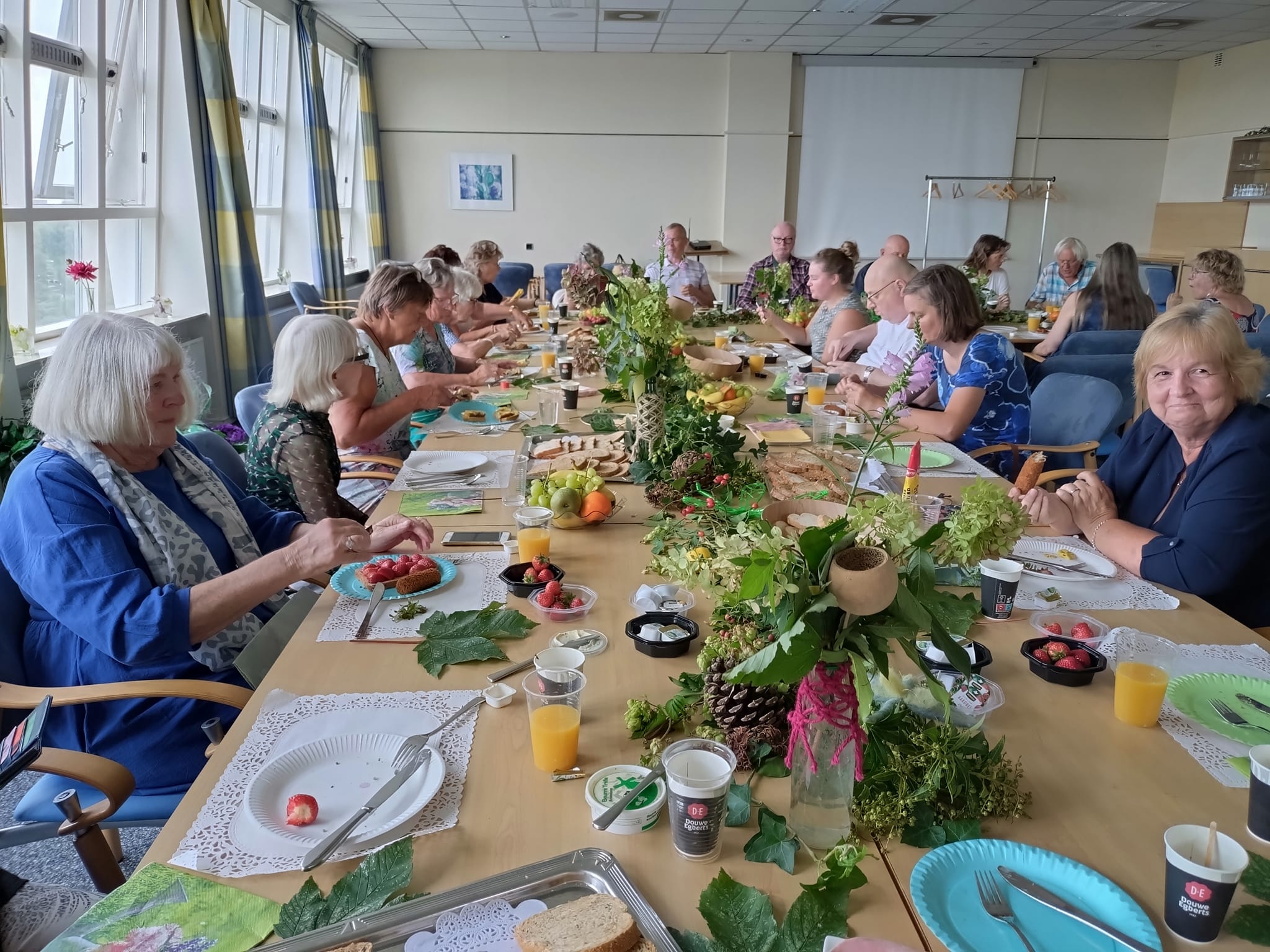 De tafels waren mooi aangekleed door Marianne die al voor dag en dauw de natuur in was geweest.
